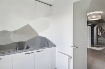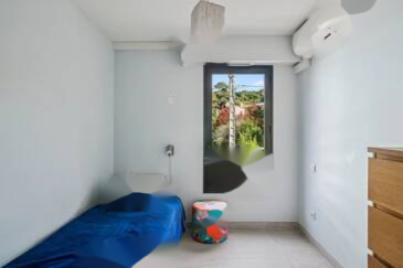 Квартира, очень светлая благодаря большим панорамным окнам, расположена на 2-м этаже. Полностью оборудованная кухня отделена, но может быть объединена с гостиной, создавая комфортное и приятное пространство для жизни. Одна из трех спален — со своим санузлом, другие две разделяют душевую комнату с WC, а гостевой санузел оснащен местом для стиральной и сушильной машины. Большая угловая терраса площадью 20 м², открытая на юг и запад, создает очень приятное пространство для квартиры.