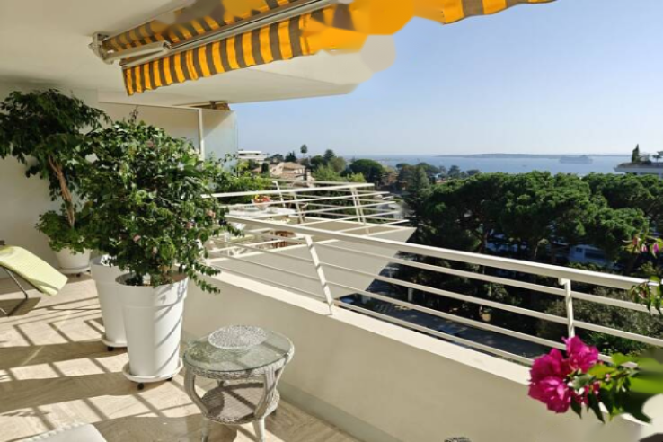 Квартира находится на 3-м этаже всего в 600 метрах от пляжей и обладает прекрасным видом на острова Лерин и на мыс Пальм-Бич. Апартаменты сквозные и включают прихожую, гостиную, столовую с открытой кухней, выходящую на красивую террасу 19 м² с видом на море, 2 спальни, одна из которых с доступом на балкон 4 м² и видом на зелень, ванную комнату и отдельный туалет. Две подвальных помещения площадью 8,25 м² и 7,9 м² дополняют это предложение.