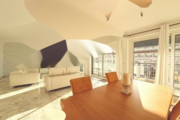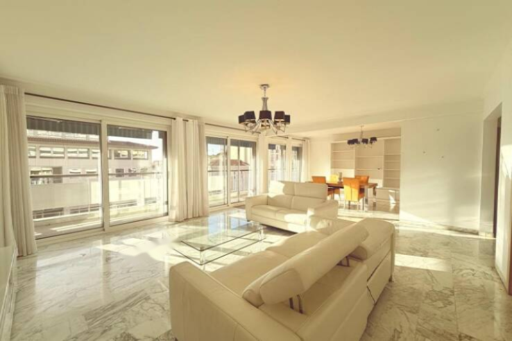 Квартира залита светом благодаря большим окнам и включает великолепную гостиную площадью почти 50 м², которую дополняет просторная терраса площадью 25 м², идеально подходящая для приема гостей или спокойного отдыха.