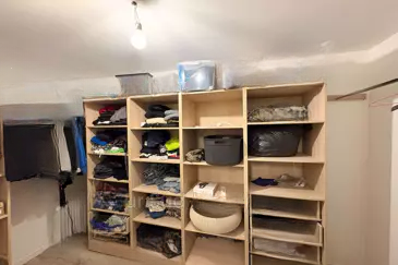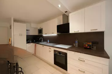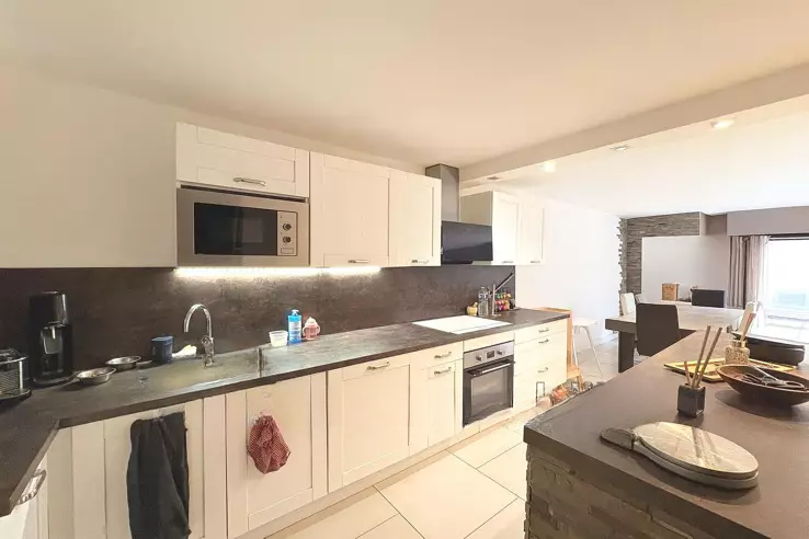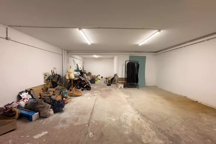 Квартира включает: на первом этаже — угловую гостиную с полностью оборудованной открытой кухней, одну спальню, ванную комнату, отдельно стоящий туалет и сад площадью 60 м². В подвале, с потолком высотой 3,20 м, расположена спальня с гардеробной площадью 20 м², и пространство в 80 м², которое можно обустроить по своему вкусу (например, спальня, игровая зона, мастерская или профессиональное помещение).