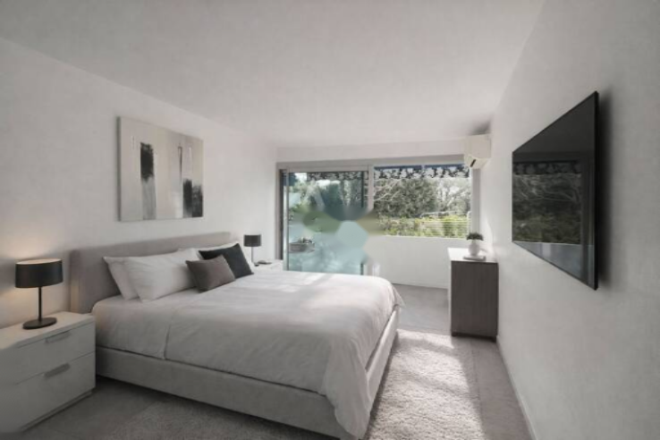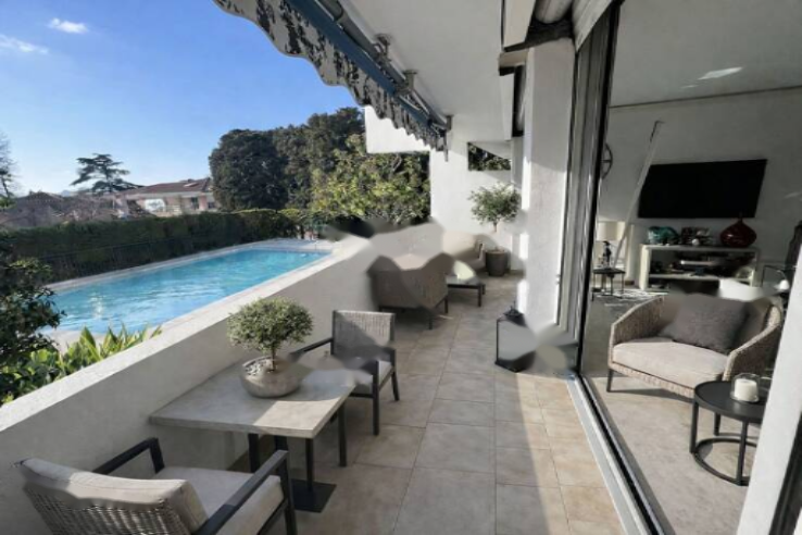 Расположенный на приподнятом уровне сада, обслуживаемый лифтом, апартамент предлагает великолепный юго-западный вид на бассейн и парк с деревьями, а также превосходное естественное освещение. Гостиная площадью около 35 м² выходит большими стеклянными дверями на балкон площадью 10,5 м². Вся резиденция оснащена электрическими роллетами, реверсивным кондиционером и коллективным отоплением.