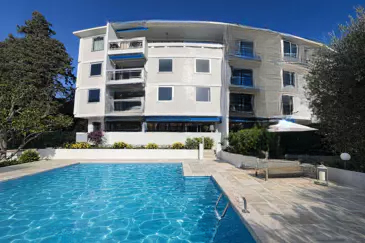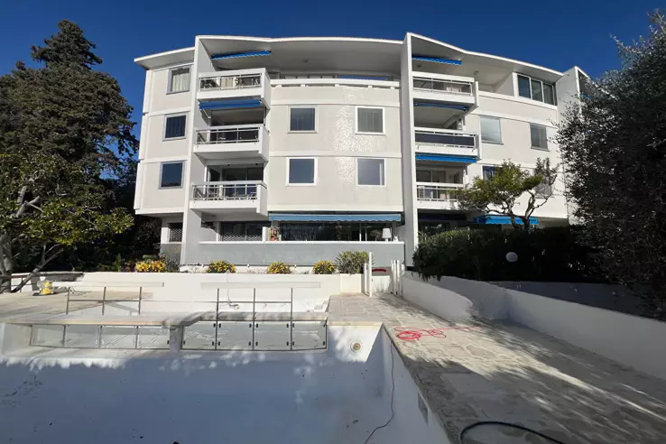 Резиденция, обновленная в 2024 году (внутри и снаружи), окружена зелеными насаждениями с ландшафтным садом и бассейном с двумя чашами. Находясь на высоком первом этаже, обслуживаемом лифтом, апартамент имеет юго-западный вид на бассейн и парк с деревьями, а также отличается отличной освещенностью.