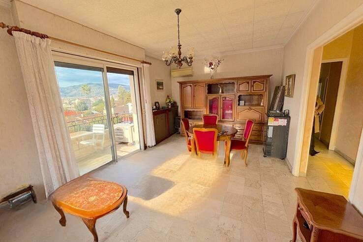 Огромный потенциал у этой 5-комнатной квартиры площадью 93 м², нуждающейся в обновлении (верхняя часть виллы) с великолепным видом на море. Благодаря доминирующему положению, она включает в себя прихожую, гостиную с ориентацией на юго-запад, 4 спальни, отдельную кухню, туалет, ванную комнату и большой гараж.