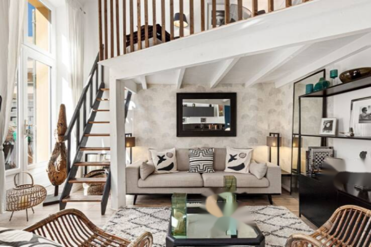 Эта квартира площадью около 62 м² впечатляет своими уникальными объемами и высотой потолков в 4,70 м, создавая уникальную атмосферу и редкое ощущение комфорта в самом центре Канн.