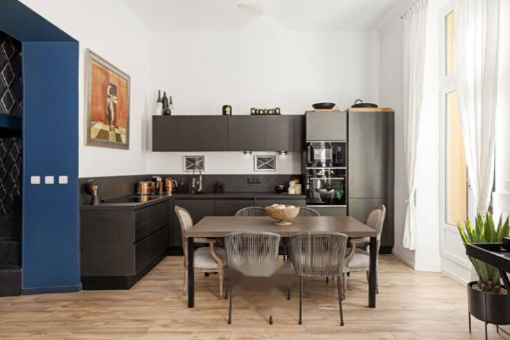 Открытая американская кухня, полностью оборудованная и меблированная, открывается в светлую и элегантную гостиную, приглашая к общению и отдыху. ✨
