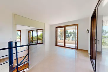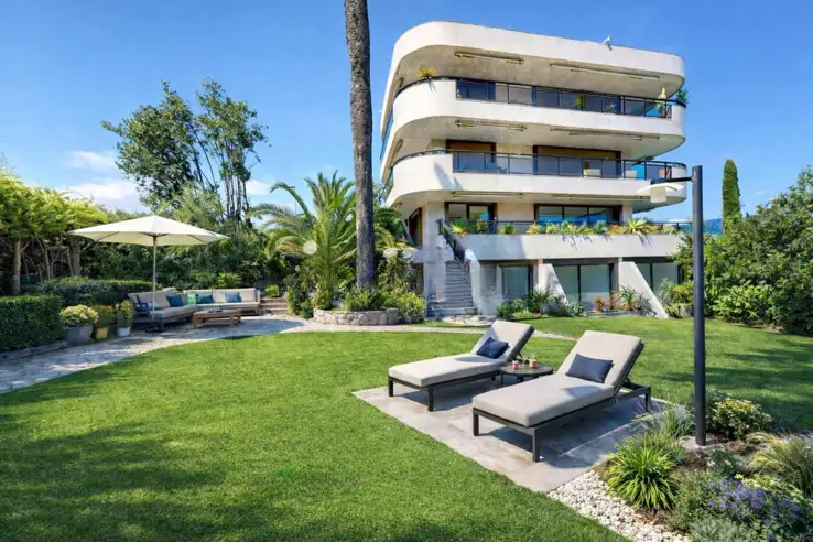 Главная терраса площадью 100 м² ориентирована на юг, и она идеально подходит для приёмов гостей и отдыха, предлагая прекрасные виды на море. На нижнем уровне находятся две дополнительные сьюты с личными террасами и доступом в частный сад площадью 350 м² и к бассейну.
