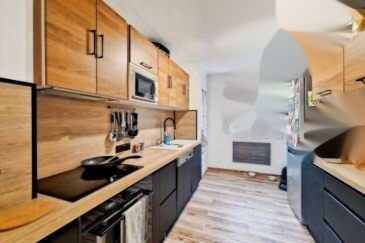 Прихожая, просторная гостиная, выходящая на восточную террасу, независимая кухня, полностью обустроенная и оборудованная, с доступом на приятную террасу, ориентированную на запад. Две спальни, с зонами для хранения и рабочим уголком.