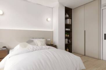 Спальная зона включает две большие спальни, каждая с собственной ванной комнатой и выходом на балкон, расположенный на востоке. Комплектует пространство отдельный туалет.