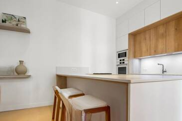 На первом этаже вас ждут две дополнительные спальни и две ванные комнаты. Изюминкой этой собственности является большая, затененная внутренняя дворика, а также просторная приватная терраса площадью около 120 кв. м, предлагающая комфортное и приятное пространство на свежем воздухе. Гараж также предоставляется для вашего удобства.