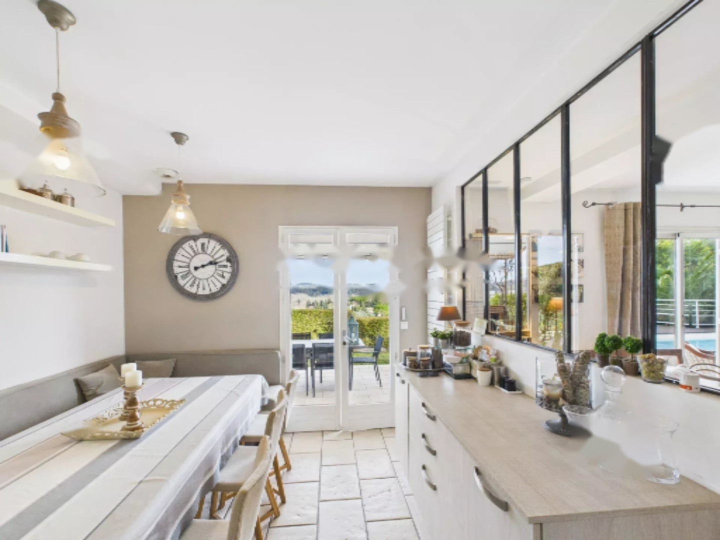 На уровне сада вас встретит просторное, наполненное светом пространство с гостиной с камином, столовой и полностью оборудованной открытой кухней. Эта уютная зона напрямую соединяется с идеально ухоженным садом с плодовыми и столетними деревьями, а также с бассейном, что позволяет в полной мере насладиться окружающей средой и климатом.