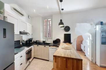 На втором этаже очаровательного старинного здания, в двух шагах от магазинов, улицы Антиб и вокзала, расположен этот великолепный трёхкомнатный солнечный апартамент площадью 56,53 м² по закону Каррез. Включает в себя: прихожую, светлую гостиную 29 м² с открытой кухней, две красивые спальни, душевую комнату с туалетом. Идеальная планировка без потерь пространства.