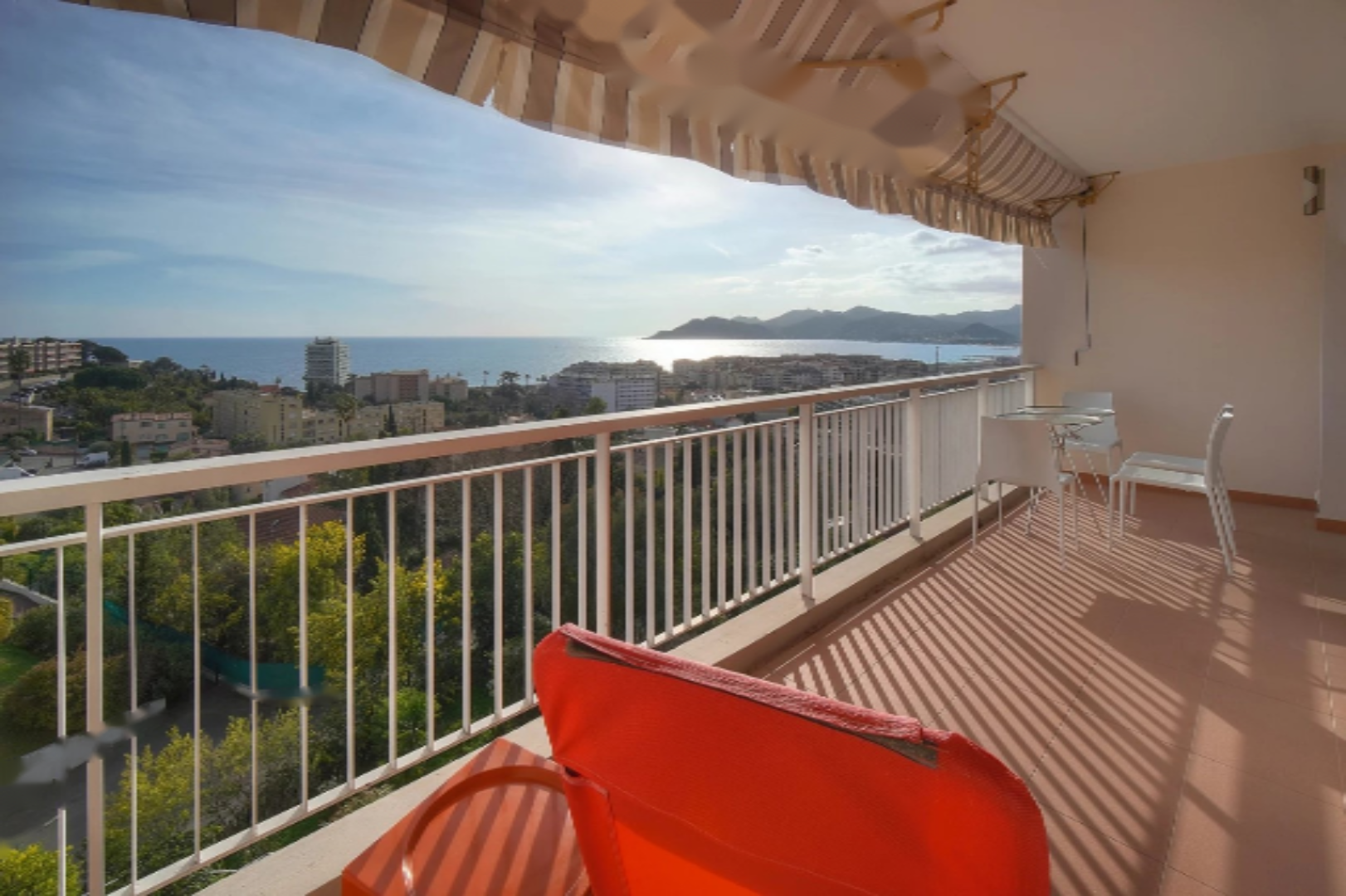 ️ Эксклюзив — Находясь на последнем этаже, эта великолепная трехкомнатная квартира с панорамным видом предлагает исключительный вид на море и массив Эстерель, в одном из самых престижных районов Канн: Круа-де-Гард.