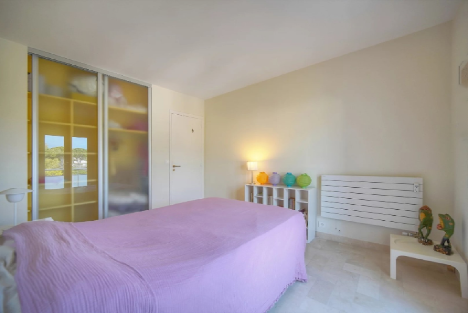 Она располагается в спокойной, охраняемой и прекрасно ухоженной резиденции. В отличном состоянии, квартира включает в себя входную группу, зал, залитый светом, выходящий на просторную террасу с южной ориентацией, которая является настоящим продолжением гостиной и идеально подходит для наслаждения морским видом.