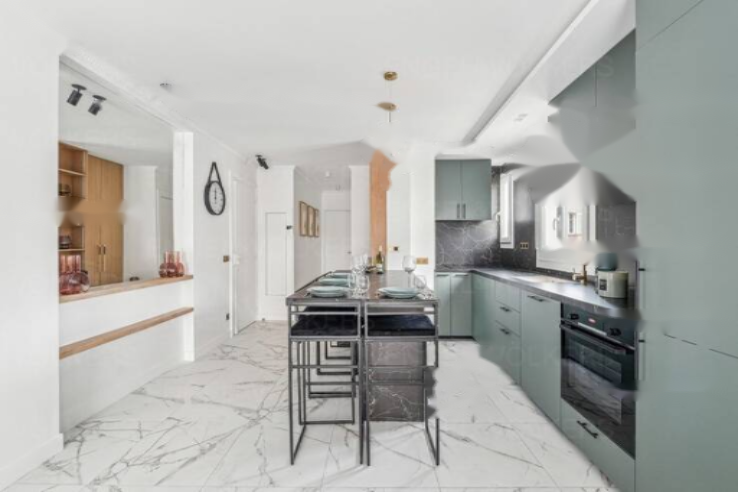 Пространство включает в себя современную кухню, открытую на просторную гостиную, выходящую на террасу без прямого вида, создавая спокойную и приятную атмосферу. Две просторные спальни также отлично освещены естественным светом. ✨ Бережная реконструкция подчёркивает каждую деталь, совмещая комфорт и современность.