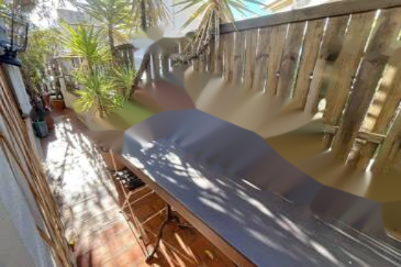 На первом уровне имеются прихожая, гостиная с камином, кухня, все с выходом на балкон площадью 9 м², а также спальня и душевая с туалетом.