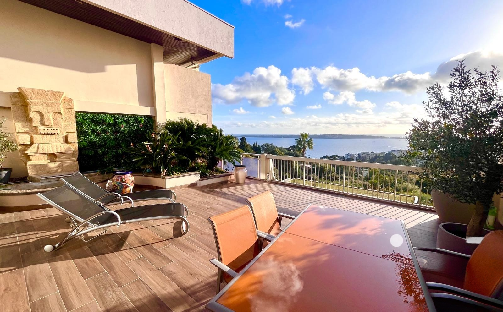 Находящийся в районе Канны-Калифорния, в резиденции высокого уровня с консьержем, ландшафтным парком, бассейном и теннисным кортом, этот великолепный апартамент площадью около 189 м² предлагает уникальный образ жизни у Средиземного моря.