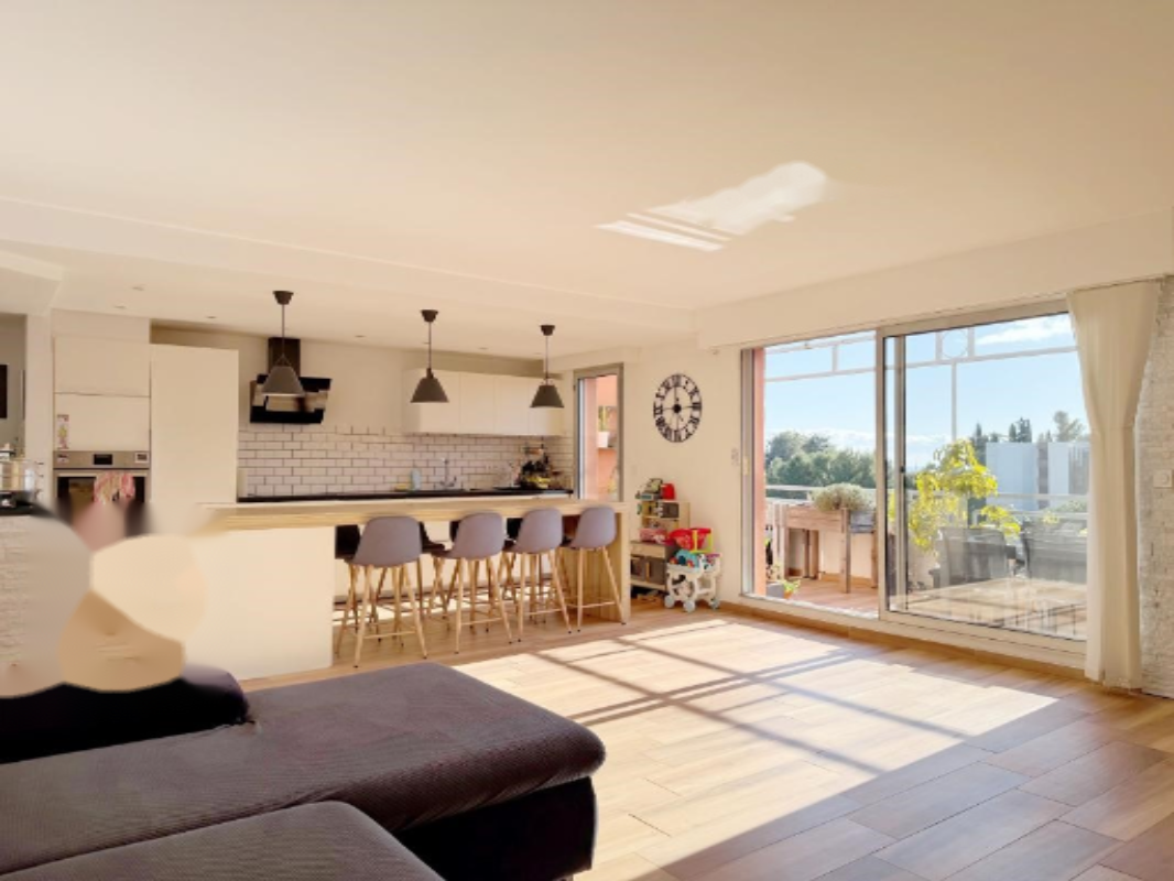 Находитесь на последнем этаже с открытым видом и южной террасой . В частном комплексе площадью 6,5 гектара, напоминающем курорт, вам предлагается великолепное 4-комнатное жилье площадью 106 м², полностью со вкусом отремонтированное.