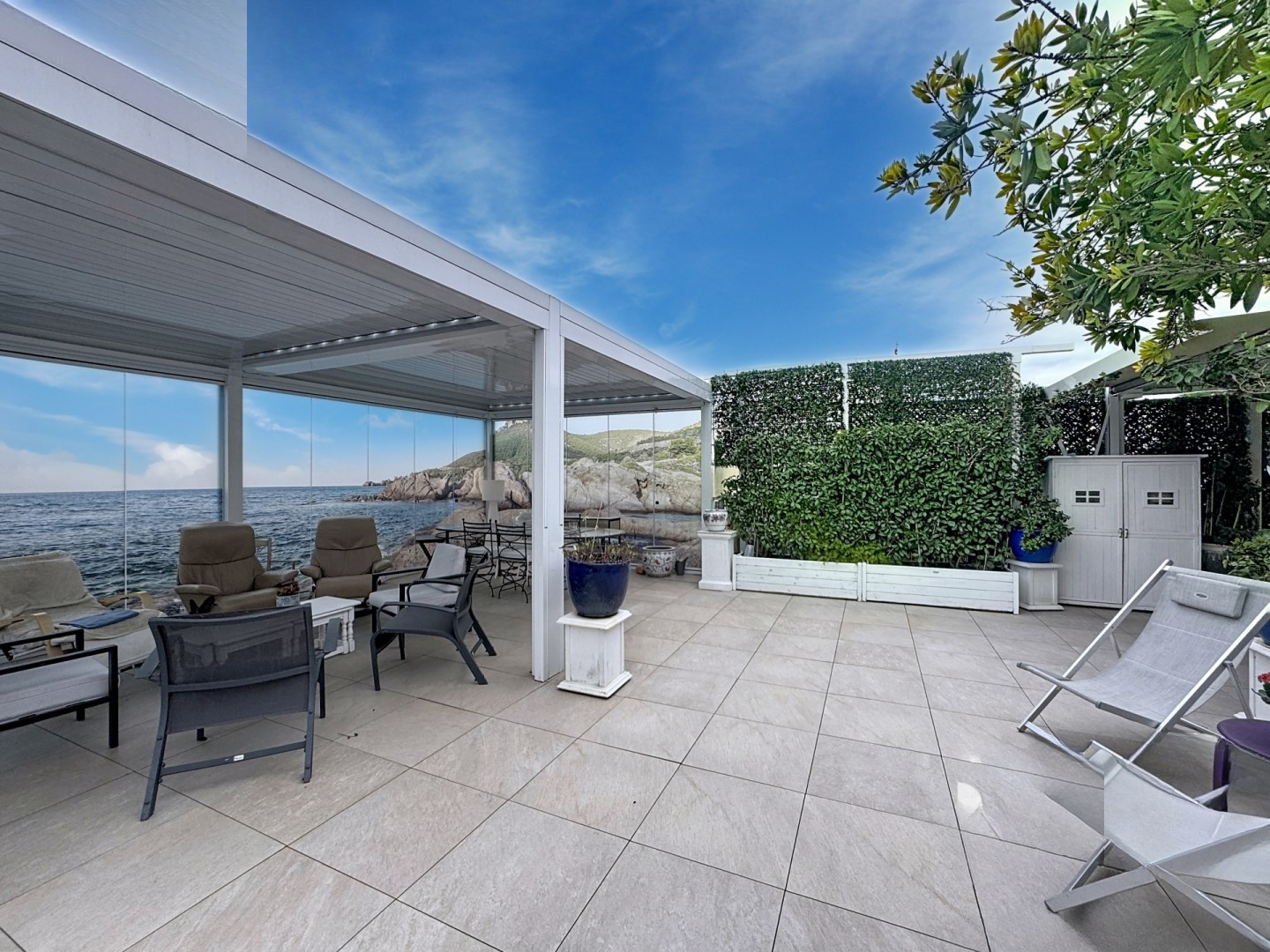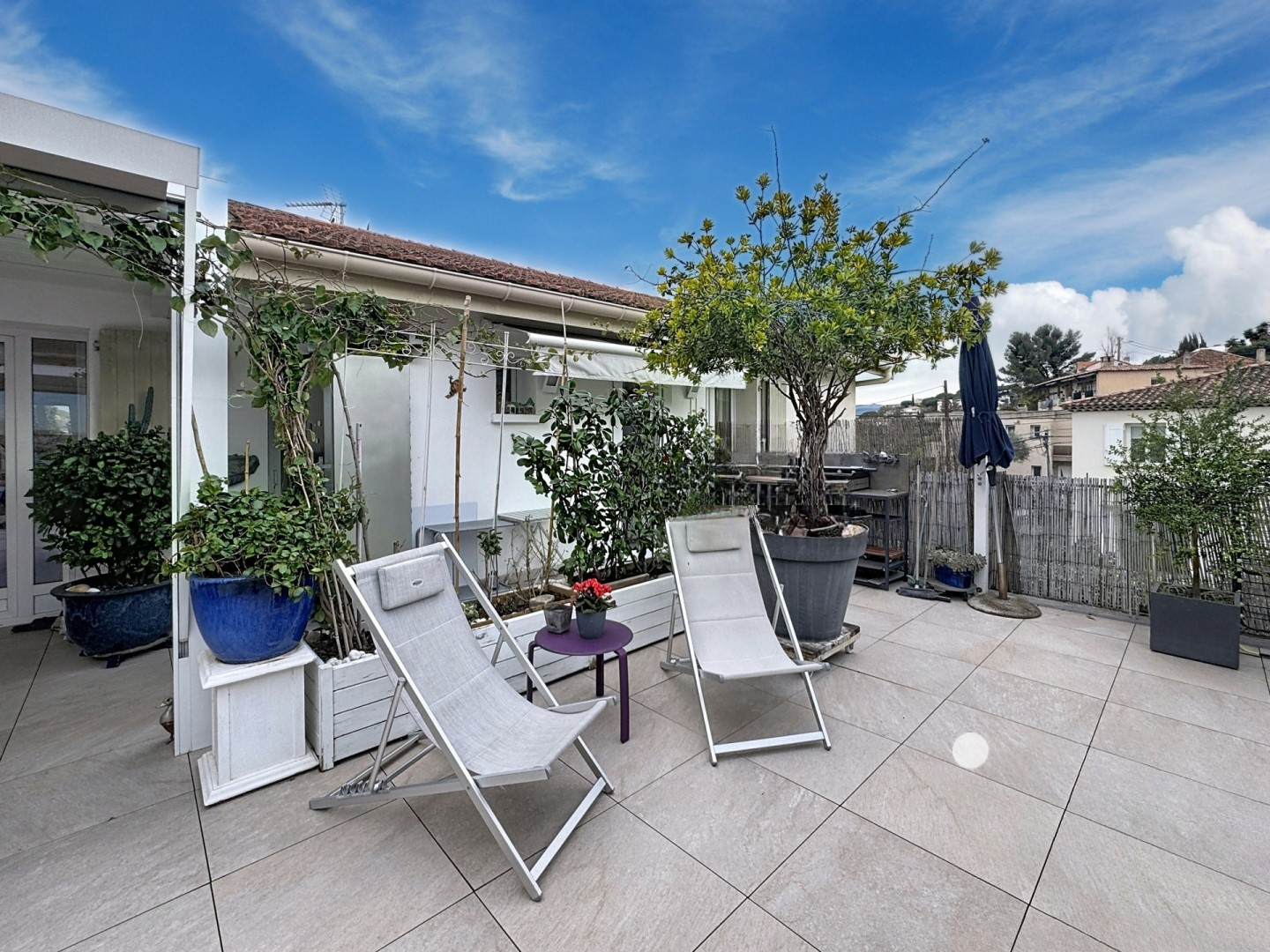 С восточно-южной экспозицией здесь всегда много света в течение всего дня. Две парковки и терраса площадью 120 м² предоставляют достаточно места для встреч с друзьями и отдыха на свежем воздухе.