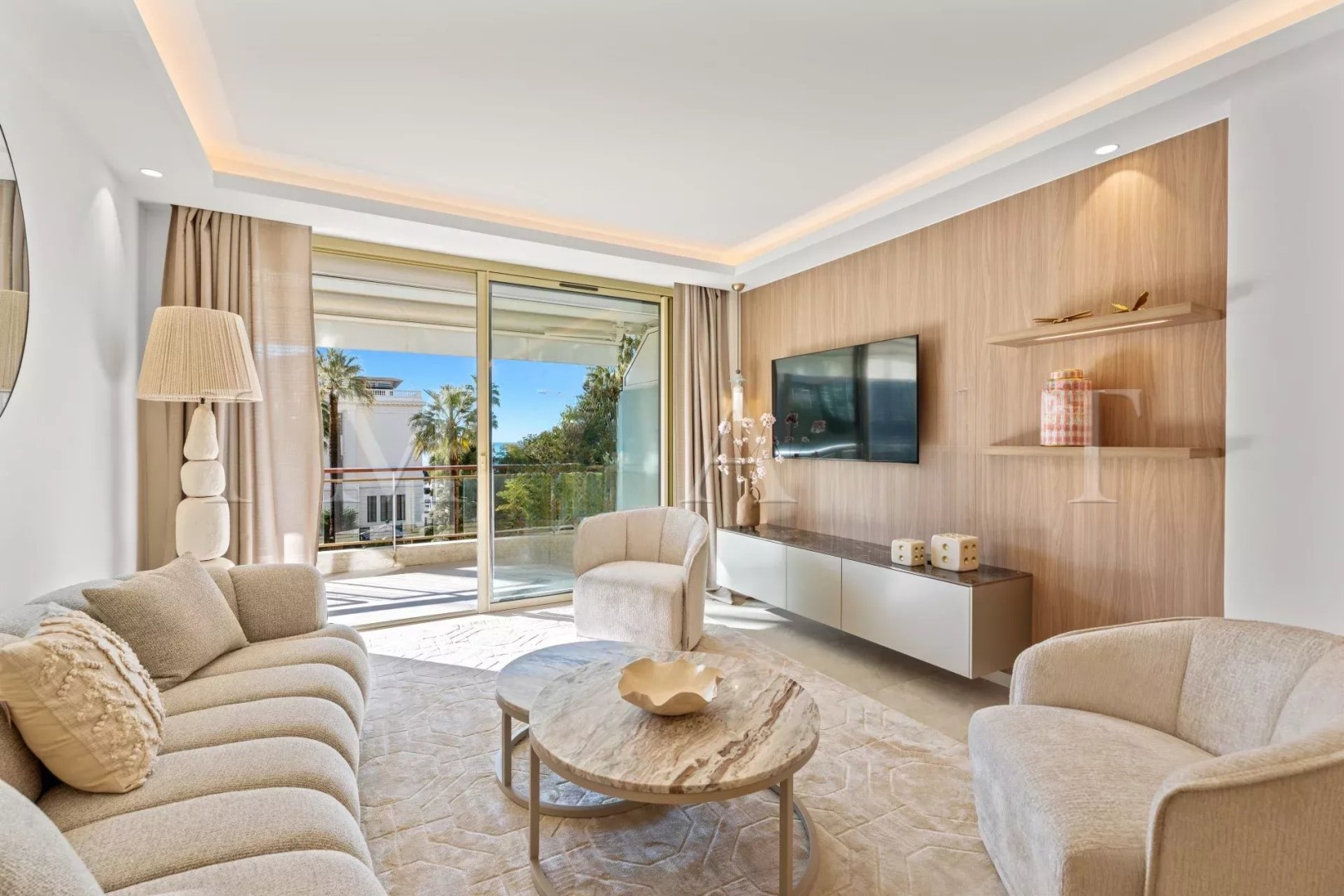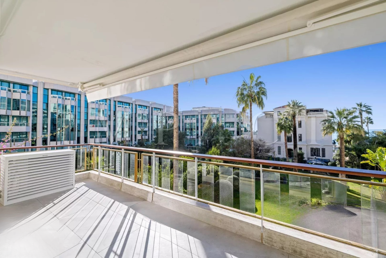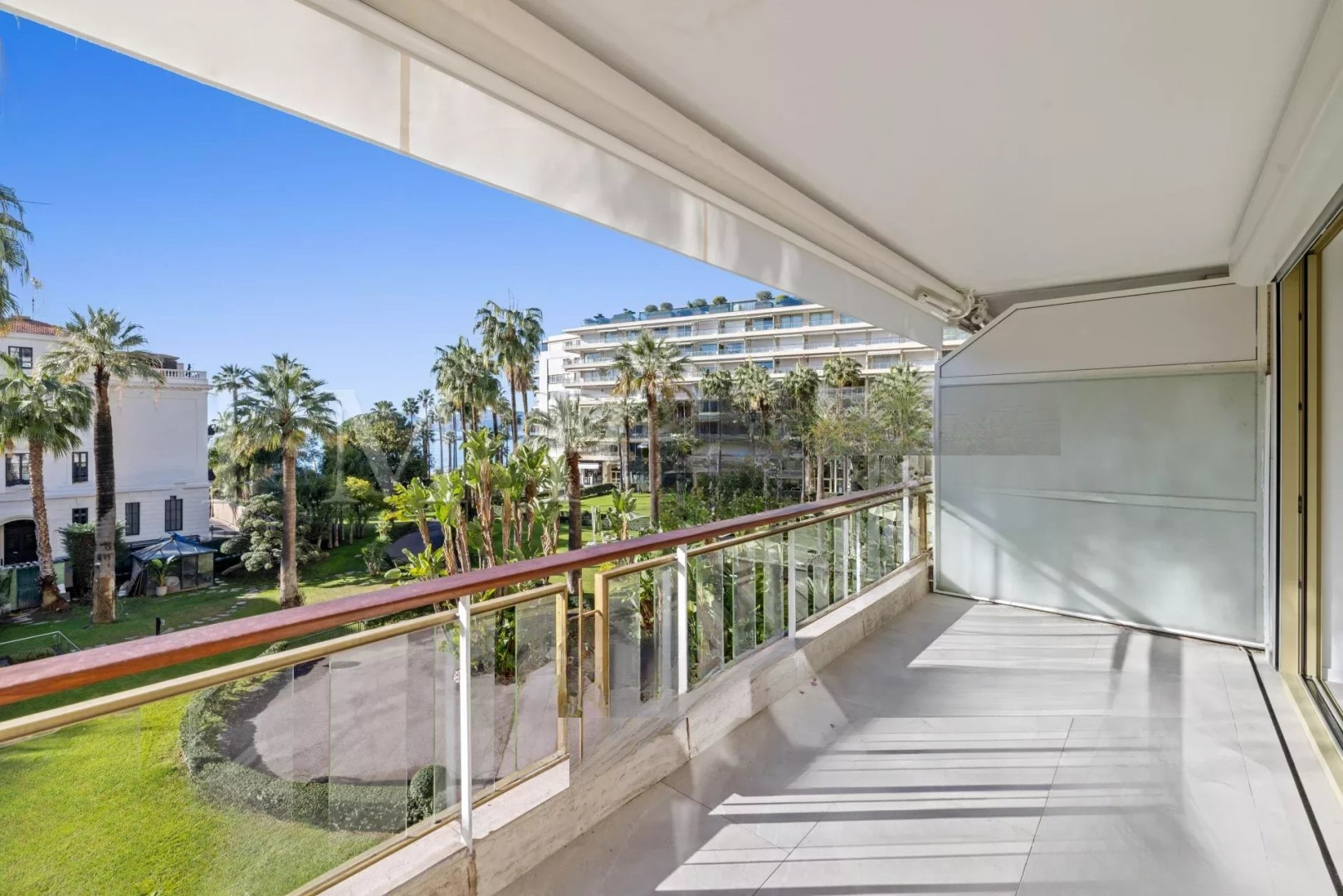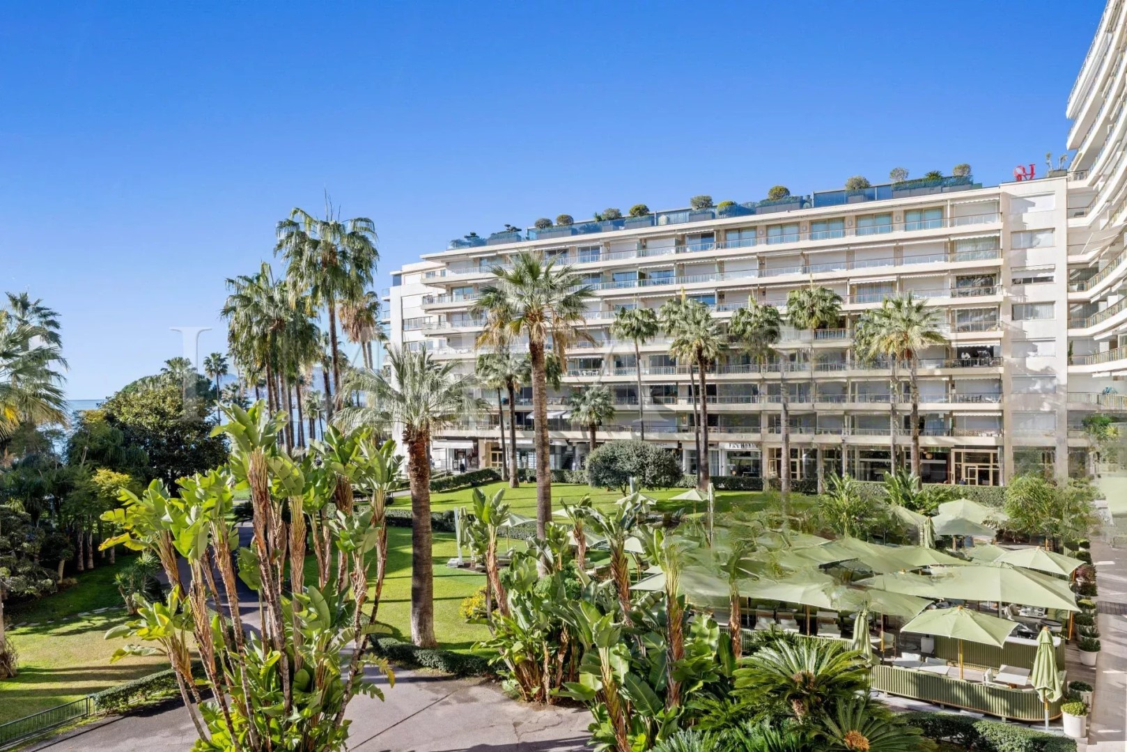 Grand Hôtel - охраняемая резиденция с круглосуточным консьержем. ♂️ Апартамент полностью обновлен с качественной отделкой, включает просторную гостиную с открытой кухней, которая продолжает террасу с видом на море и сад.