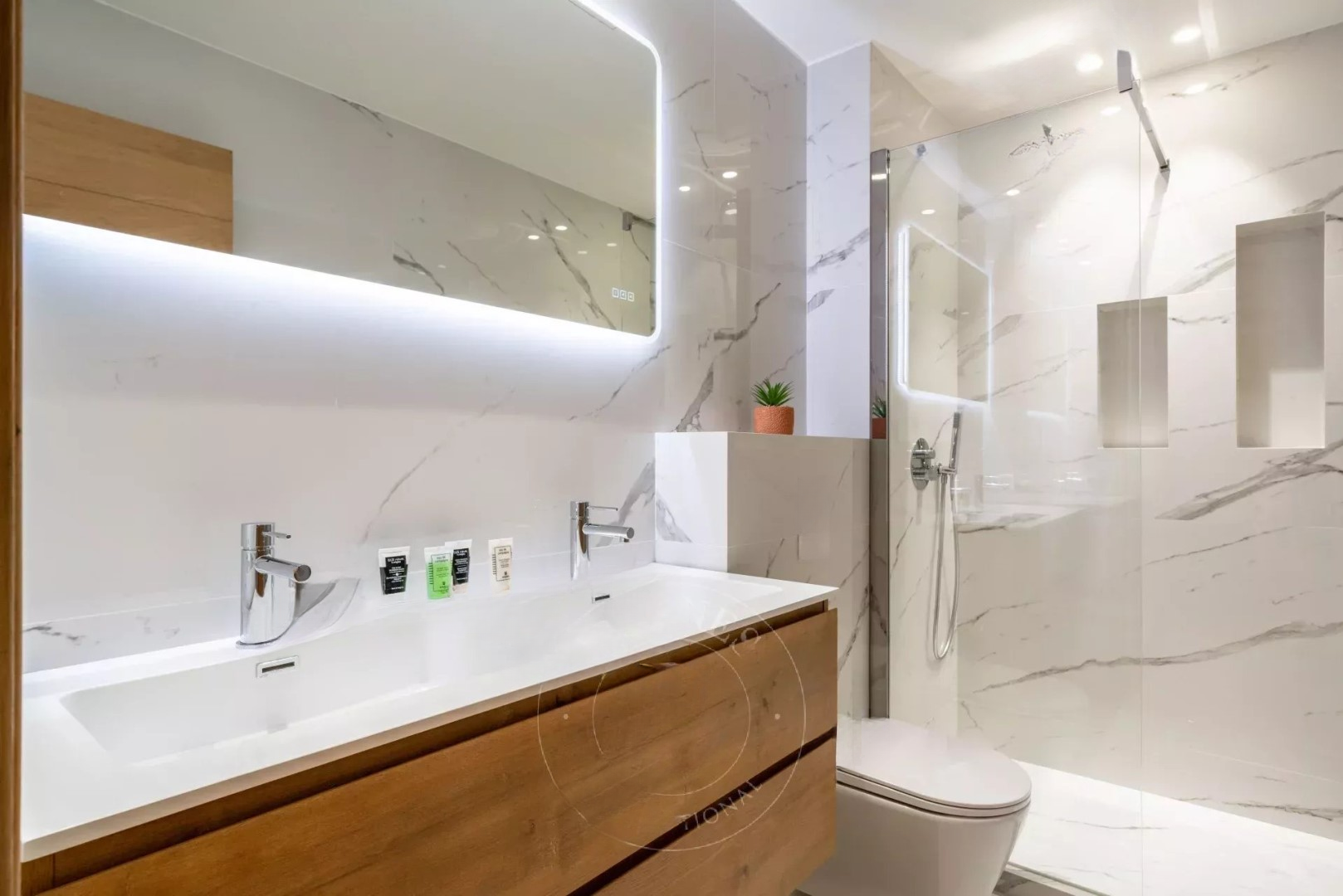 Она включает в себя вход, гостиную/салон с выходом на красивую террасу 20 кв. м, независимую кухню, главную спальню с ванной комнатой, 2 спальни и отдельную ванную комнату.