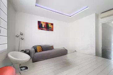 Этот 3/4 комн. площадью 78,16 кв. м по общ. и 59,59 кв. м по праву состоит из прихожей с прачечной, светлой гостиной с открытой американской кухней и спальни с гардеробной и ванной комнатой.