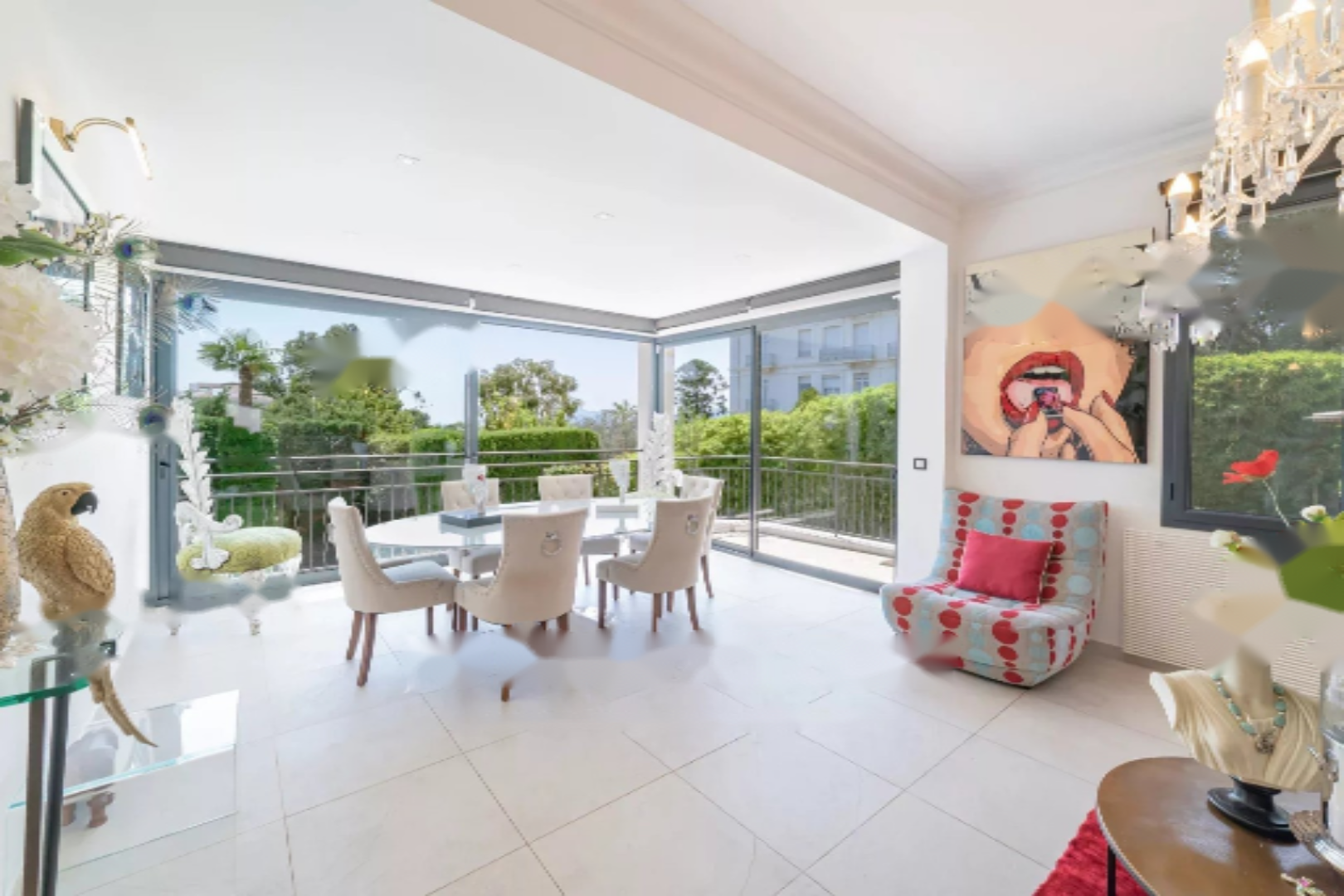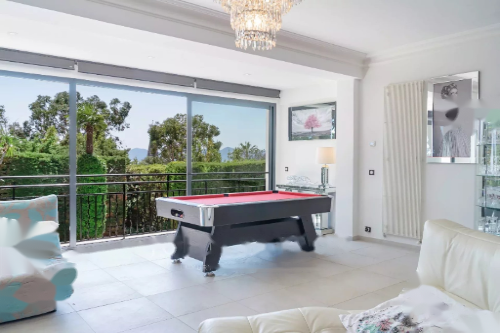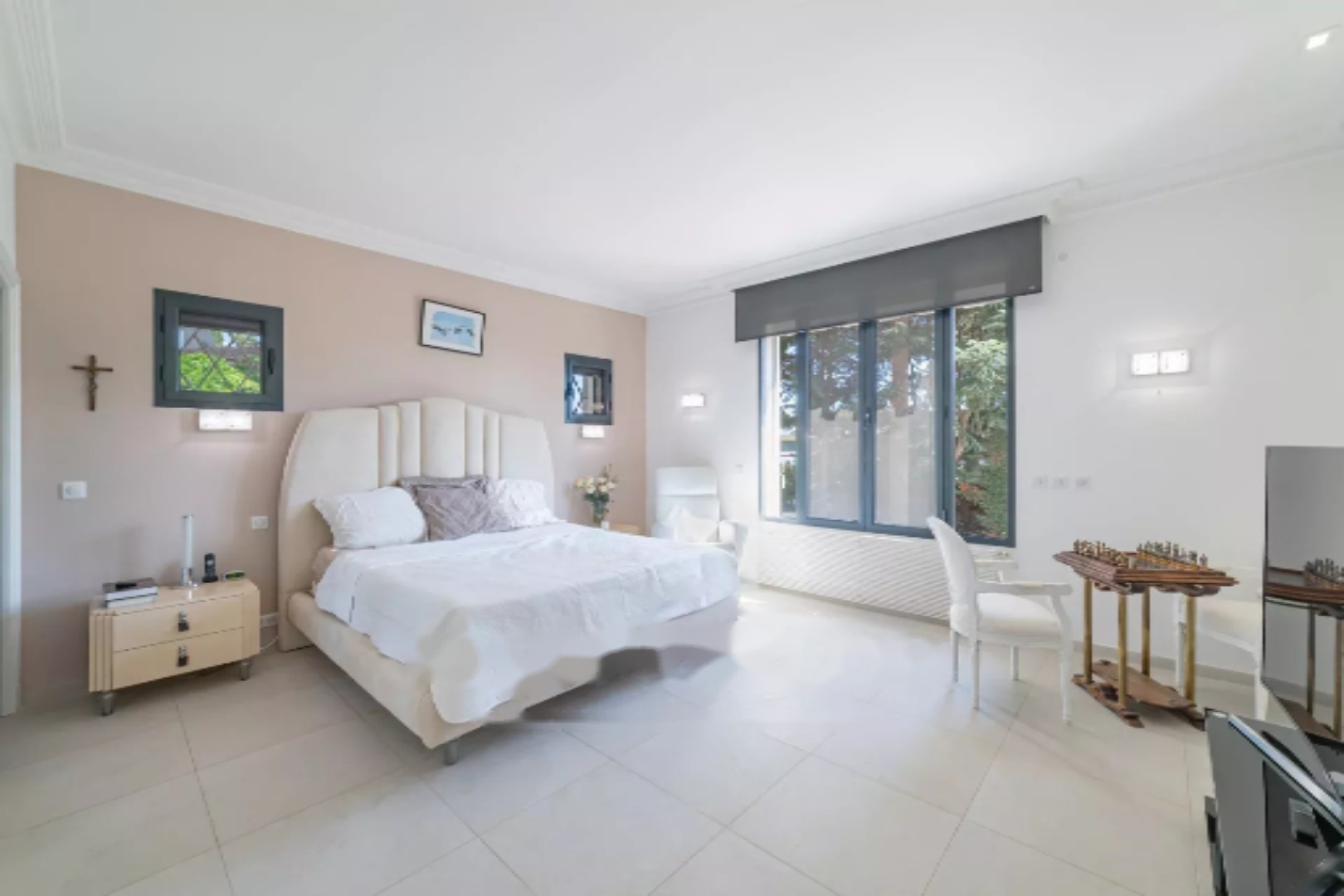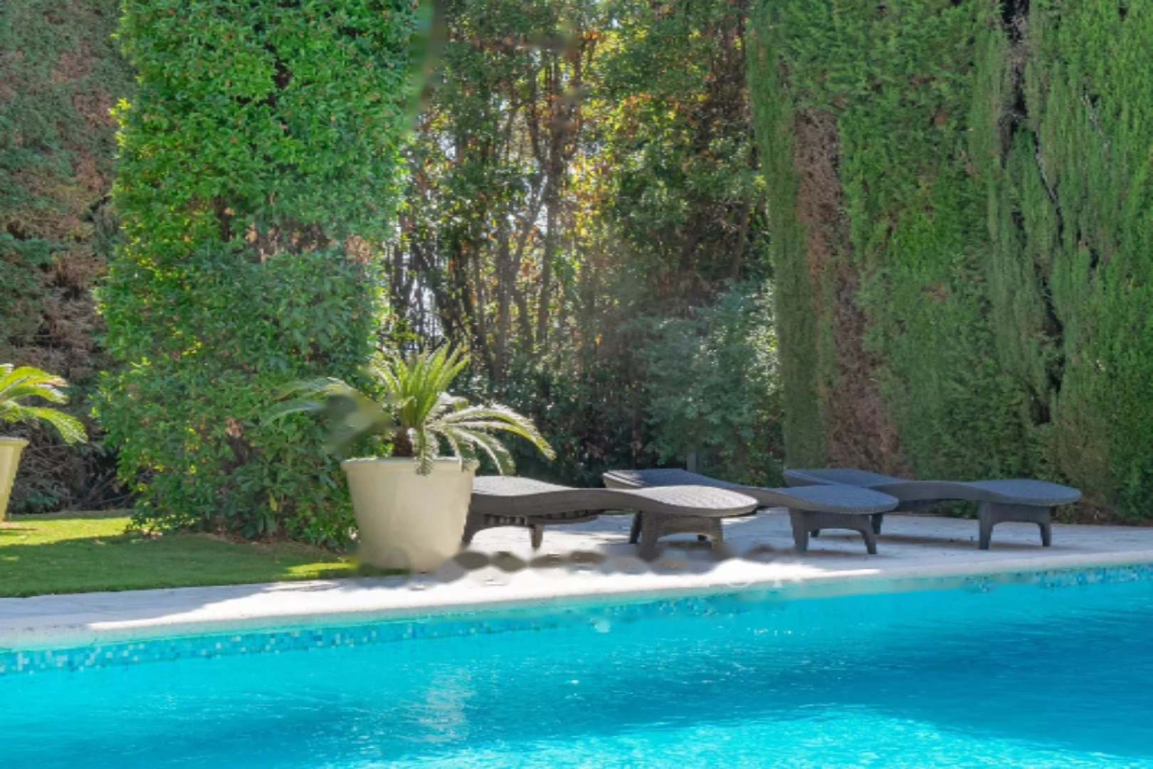 Обладая большими объемами, она имеет общую площадь 400 м², разделенную на два уровня. Она ориентирована на юг и оснащена многочисленными солнечными террасами, окружена очаровательным ландшафтным садом с большим бассейном длиной 12 метров и несколькими видами на море.