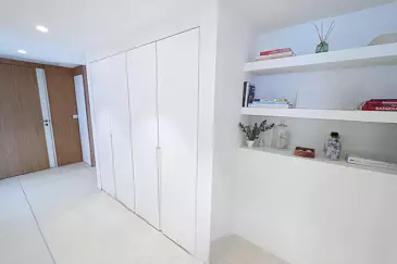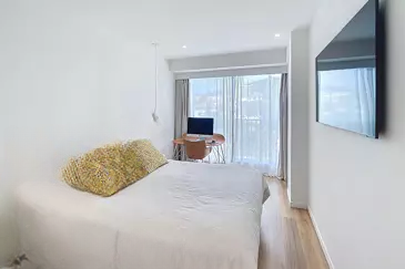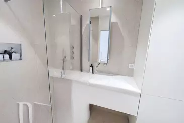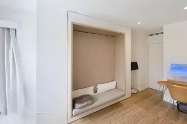 Этот сквозной, южно-северный, полностью отремонтированный апартамент с высококачественной отделкой включает: прихожую с многочисленными шкафами, просторную гостиную с оборудованной премиум-кухней, одну спальню с прилегающей ванной комнатой/туалетом, вторую спальню с гардеробной, отдельным душем и туалетом.