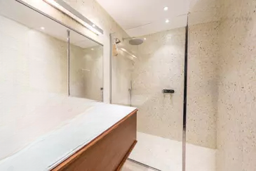 Большая терраса площадью 42 м², ориентированная на юг, расширяет жизненные пространства и приглашает в полной мере наслаждаться Средиземным морем. Гостиная, телесалон и столовая широко открываются на это наружное пространство, создавая естественную связь между интерьером и экстерьером. ☀️