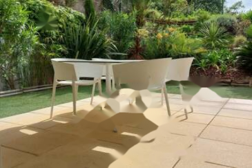 Она включает в себя прихожую, светлую гостиную с полностью оборудованной кухней, две спальни с прямым выходом в сад, душевую комнату и отдельный туалет.