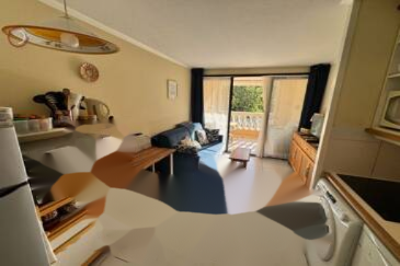 Вилла Francia. Вид на сады резиденции, в тихом месте, красивый студийный номер кабины около 23 кв. м + терраса 6 кв. м, подходит для размещения до 6 человек. Меблирован и оснащен. Место на крытой парковке, доступной напрямую на лифте.
