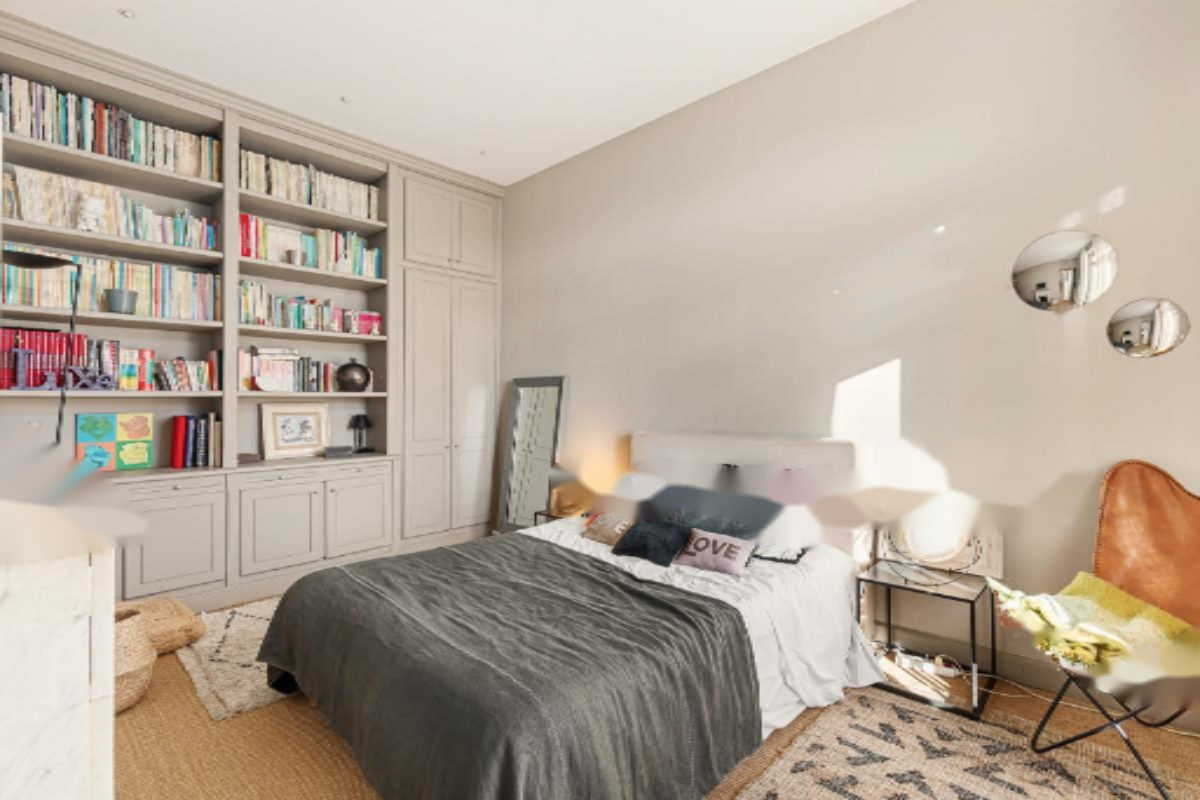 Справа находится красивый коридор-библиотека, где расположена прекрасная независимая кухня со старыми плитами. Кухня ведет в две большие северные комнаты с шкафами и прекрасным видом на горы Грасса без соседних строений.