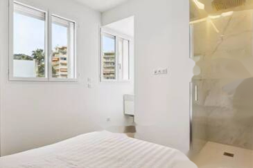 Расположенный в престижной резиденции на Круазетт, великолепный трехкомнатный полностью отремонтированный апартамент площадью около 75 кв. м, в двух шагах от отеля Мартинез. Состоит из приветствующего входа, светлой гостиной с обеденной зоной, современной кухни американского типа полностью оборудованной, балкона с приятным видом на море, двух комфортабельных спален, каждая с собственной душевой комнатой. Удобный и практичный уголок для стирки.