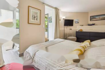 На уровне сада: кондиционированная студия с душевой и туалетом.