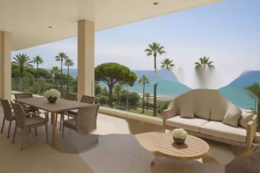 Вы найдете просторную светлую гостиную с салоном и открытой кухней, все с захватывающим видом на море. Апартамент включает три спальни "en suite", каждая с собственным гардеробом, включая великолепную главную спальню, просторную и элегантную.