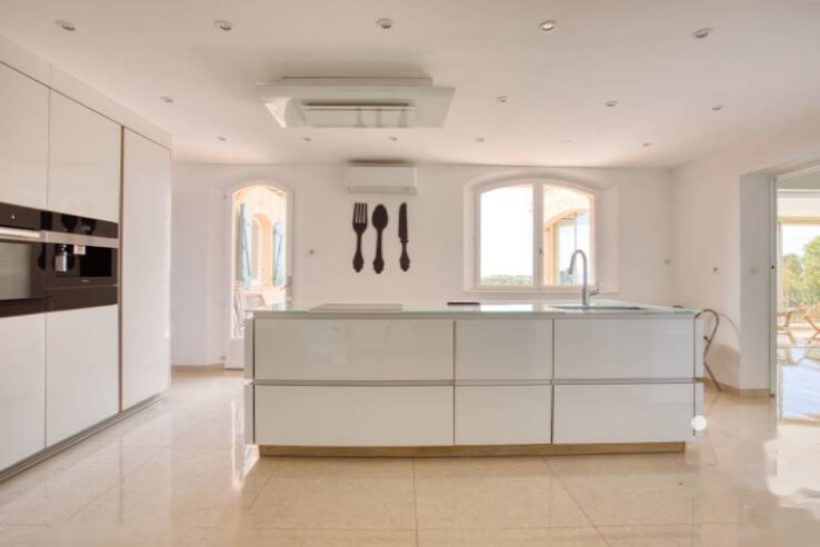 В доме имеется 7 помещений/4 спальни-люксы, две из которых с видом на море, гардеробная, ванна с гидромассажем, итальянский душ и приватный балкон/терраса. Жилая площадь составляет 80 м². Современная кухня с раздвижной стеной соединяет с гостиной/столовой. ☀️