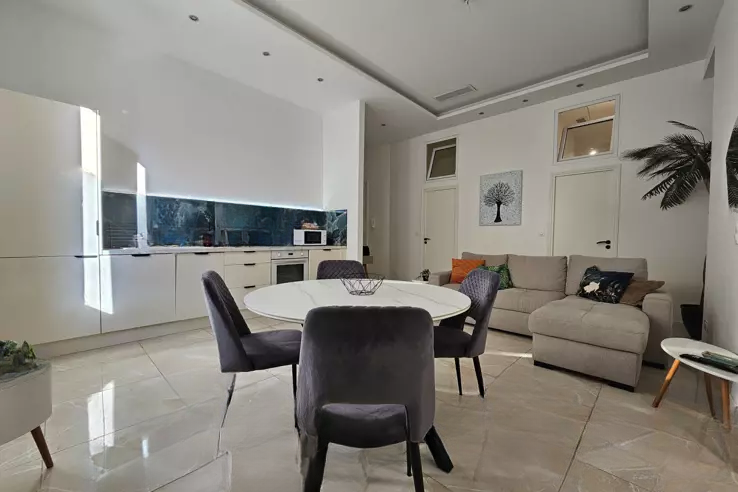 Независимый туалет, светлая гостиная с открытой кухней прекрасно подходят для отдыха семьей или с друзьями. Система кондиционирования обеспечивает оптимальный температурный комфорт круглый год — это является большим плюсом для краткосрочной аренды.
