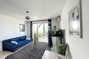 Предлагается к продаже этот великолепный двухкомнатный апартамент на последнем этаже современной резиденции (построенной в 2019 году) в центре Канн-ла-Бокка. Он включает входную зону с гардеробом, гостиную с открытой кухней, просторную террасу с южной экспозицией, без посторонних глаз и с видом на море, одну спальню и большую ванную комнату.