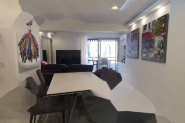 Жилая площадь включает в себя прихожую, ведущую в светлую гостиную и современную оборудованную кухню американского типа, террасу с великолепным видом на море, спальню с рабочей зоной, шкафом и выходом на террасу, а также ванную комнату с туалетом.