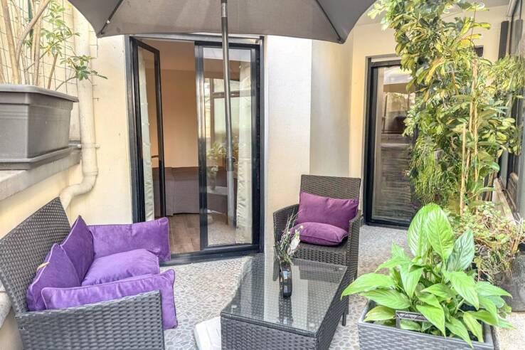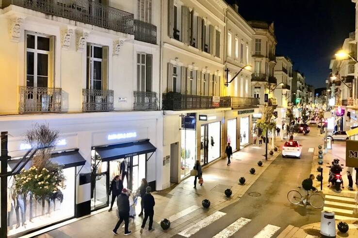 Очень красивая квартира с 3 комнатами, 86 м² и террасой 12 м². Расположена в недавней престижной резиденции на улице Антибас, с двумя спальнями, двумя ванными комнатами, двойной гостиной и кухней, с южной ориентацией. Большая двойная гостиная площадью 30 м² и просторная отдельная кухня с уголком для завтрака имеют прямой вид на самую престижную часть торговой улицы в Каннах — улица Антибас. Апартаменты имеют большой холл с большим шкафом. Пол выполнен из каррарского мрамора. Спальни отделены от гостиной, очень тихие и соединены большой дверью-окном с частной террасой на внутренний двор. Основная ванная комната примыкает к главной спальне. Удобства: лифт, двойное остекление, кондиционер, тишина, бронированная дверь, жилая зона. Квартира идеально подходит для проживания в лучшем районе Канн, для отпуска или в качестве арендного вложения для отдыха и многочисленных международных конгрессов, проводимых в Каннах, таких как Кинофестиваль, Mipim, Mipcom, Miptv, Lions и т.д., которые приносят отличный годовой доход. Кроме того, подходит для профессионального, медицинского, юридического или нотариального использования, благодаря очень центральному расположению, престижному зданию и разрешению в регламенте кондоминиума на профессиональную деятельность.