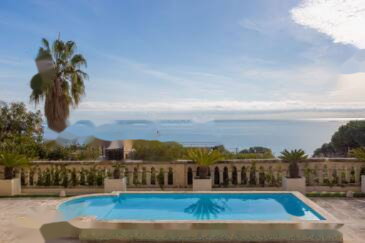 Общая жилая площадь составляет около 380 м² и располагается на трёх уровнях. На первом этаже располагается просторная гостиная, выходящая на частную террасу площадью 120 м² с бассейном и потрясающим видом на море. Также здесь расположены кабинет и отдельная оборудованная кухня. Первый этаж включает спальню с ванной комнатой и просторный балкон площадью 30 м² с панорамным видом на море. На втором этаже находятся ещё четыре спальни с ванными комнатами, одна из которых с антресолью.