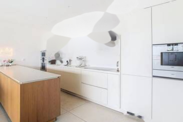Просторная и светлая гостиная плавно переходит на террасу, расположенную на южной стороне, которая обеспечивает замечательную освещенность в течение всего дня. Открытая кухня, с лаконичным дизайном и высококлассной отделкой, гармонично вписывается в современную эстетику.