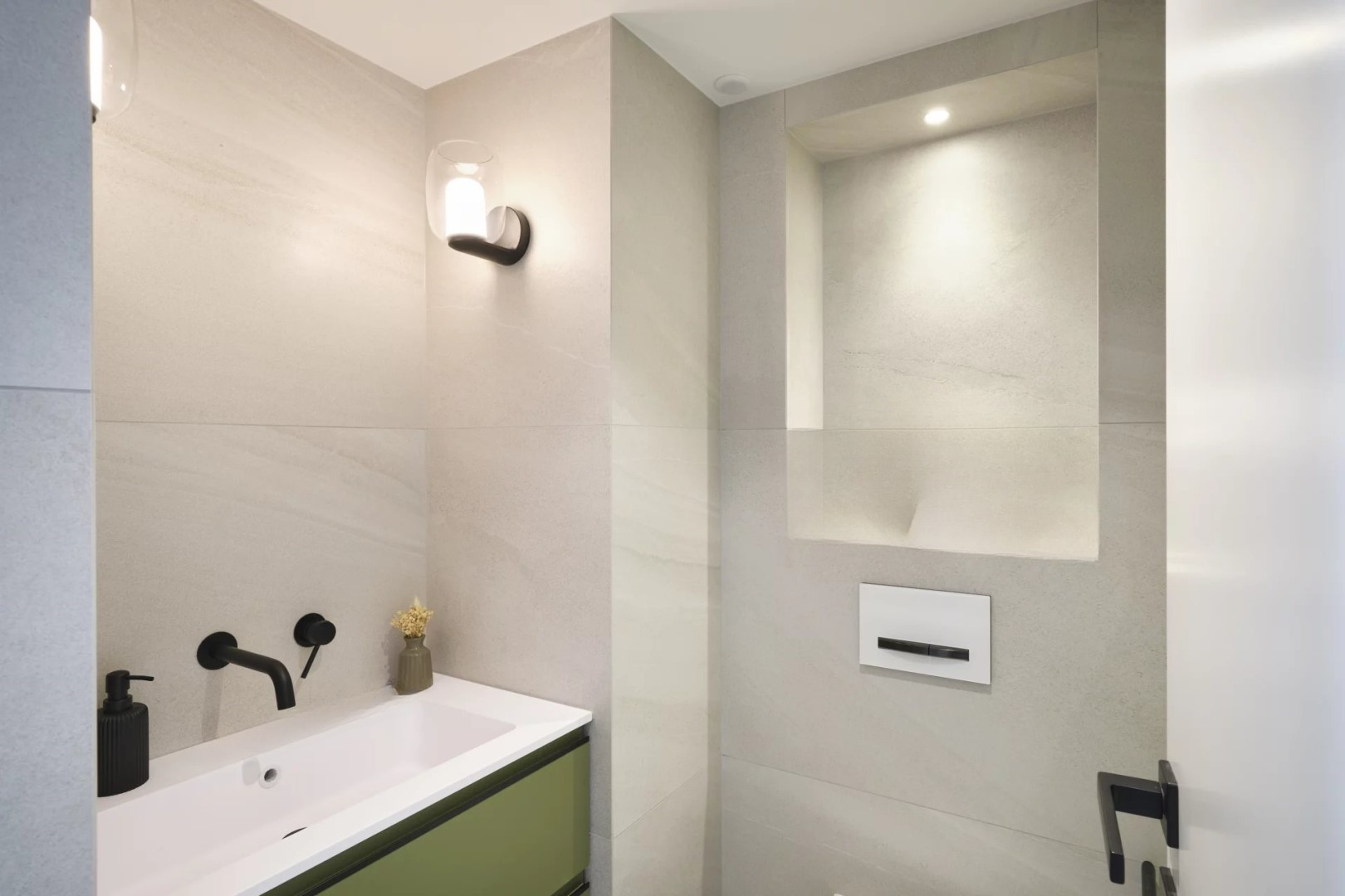 Ночная зона состоит из трех спален, каждая с собственной душевой и туалетом, обеспечивая комфорт и уединение каждому жильцу. Гардеробная, прачечная и оптимизированные хранилища дополняют планировку с долей сдержанности и эффективности.