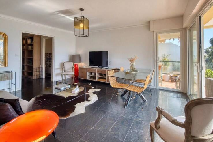 Расположенная в тихом и жилом районе Канн, эта 3-комнатная квартира площадью 80 м² на этаже, предлагает светлую и ухоженную жилую среду. Гостиная открывается на просторную террасу 21 м², ориентированную на юго-запад, что идеально для полного наслаждения естественным светом. Кухня, полностью оборудованная, гармонично интегрирована в жилое пространство.