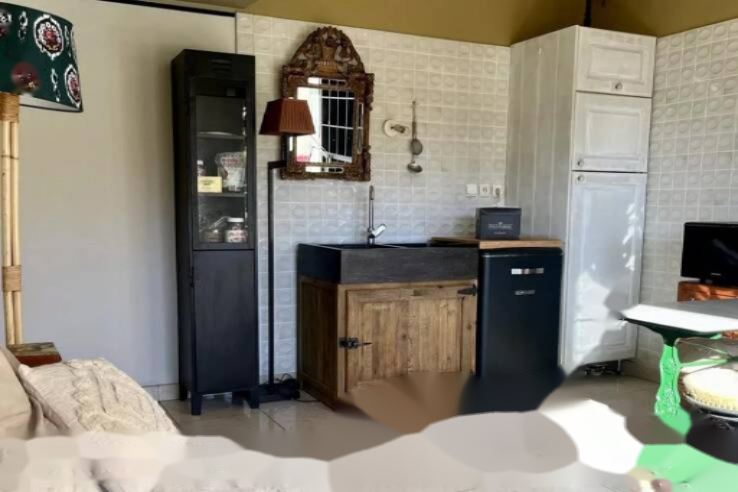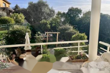 Квартира включает в себя светлую гостиную, выходящую на террасу и сад, полностью оборудованную открытую кухню, спальню с гардеробом и душевую с окном.