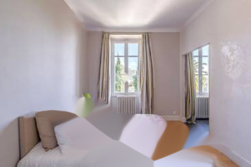 Расположенная в районе внизу Круа-де-Гард, всего в 300 м от пляжей, вокзала, остановок автобусов и 600 м от магазинов, она открывает панорамный вид с обзором на море и изобилием света благодаря многочисленным высоким окнам, характерным для буржуазных домов.