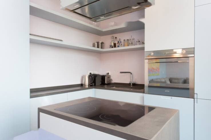 Полностью отремонтированная с изяществом, квартира состоит из двух спален с собственными ванными комнатами и светлой гостиной с открытой кухней.
