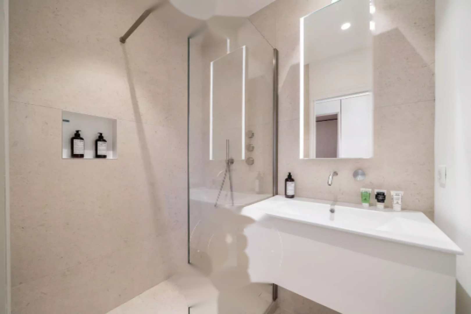 Апартамент включает просторную гостиную с полностью оборудованной кухней в американском стиле и две спальни люкс, каждая со своей собственной душевой кабиной.