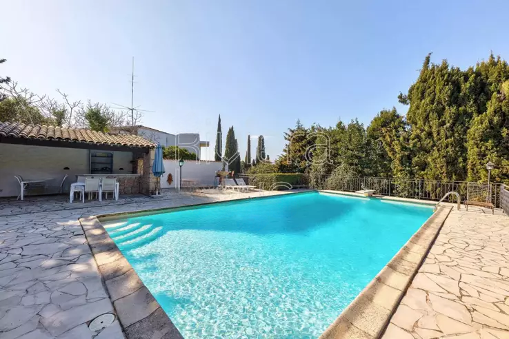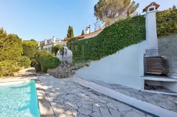 Эта великолепная вилла площадью 207 кв. м располагается в зеленом и спокойном окружении, предлагая просторные помещения и изысканную отделку. Она находится в идеальном состоянии: просторная и светлая гостиная с элегантным камином, открытая кухня, три спальни со своими ванными комнатами, кабинет и прачечная. Под террасой находится отдельная квартира с двумя спальнями, двумя ванными комнатами и мини-кухней.