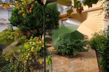 Квартира, доступная через тихую улочку и приятный дворик, полностью ориентирована на сторону двора и сада с южной экспозицией.