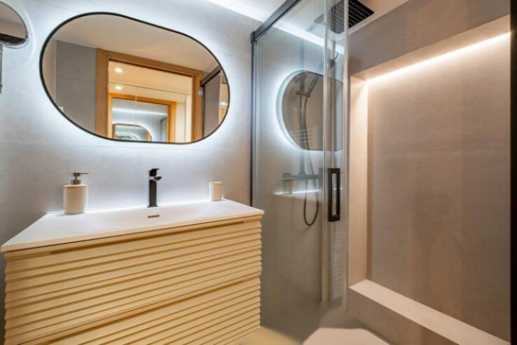 Сразу при входе вас встречает современная полностью оборудованная кухня, открывающаяся в просторную гостиную. Последняя продолжает интерьер на уютную террасу площадью 3 м², идеально подходящую для отдыха на свежем воздухе. Туалет завершает эту гостеприимную зону.